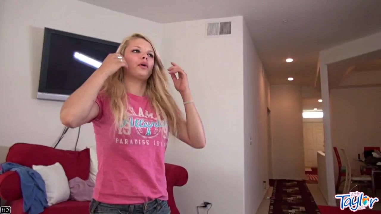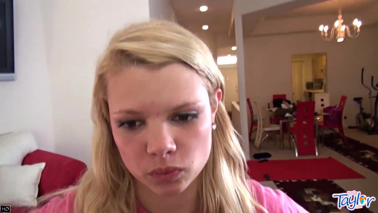 Blonde Girl Little Taylor loves sucking on Big White Cock