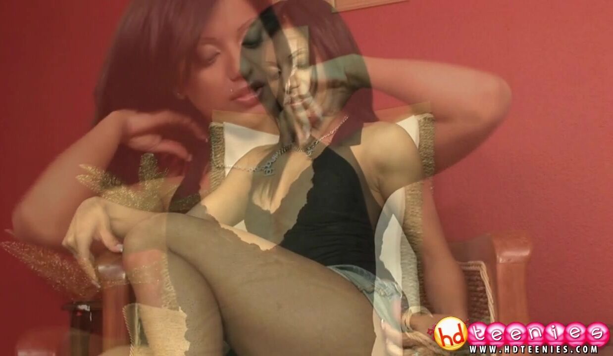 Sexy Teen Latina start touching her some parts of her body including her tits the strip off her clothes. She fingering hard her tight pussy