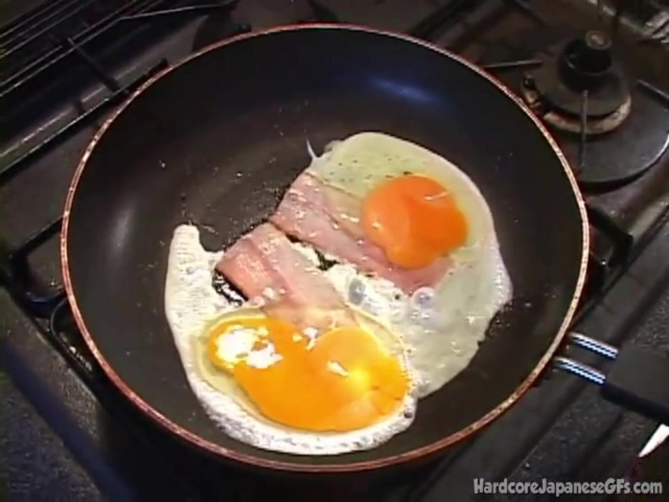 Japanese Wife cook her husband breakfast, until he ate. she starting kissing her wife and she blowjob her husband