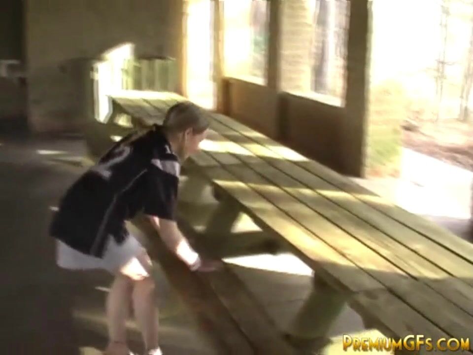 Kitty Karsen playing a ball outside and get horny. She strip off her panty and rubbing fingering her pussy to satisfy her pleasure