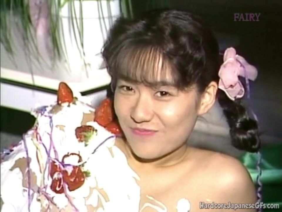 Japanese Babe with cream all over her body. the men arrive and licking her pussy with cream. the girl blowjob the dick and fucking hardcore until it cumming