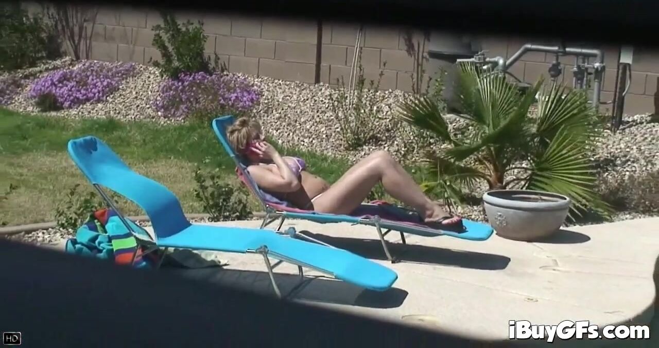 Brooke Haven caught having great time outdoor in bikini. She try some clothes while which showing her big tits and trimming her hair pussy