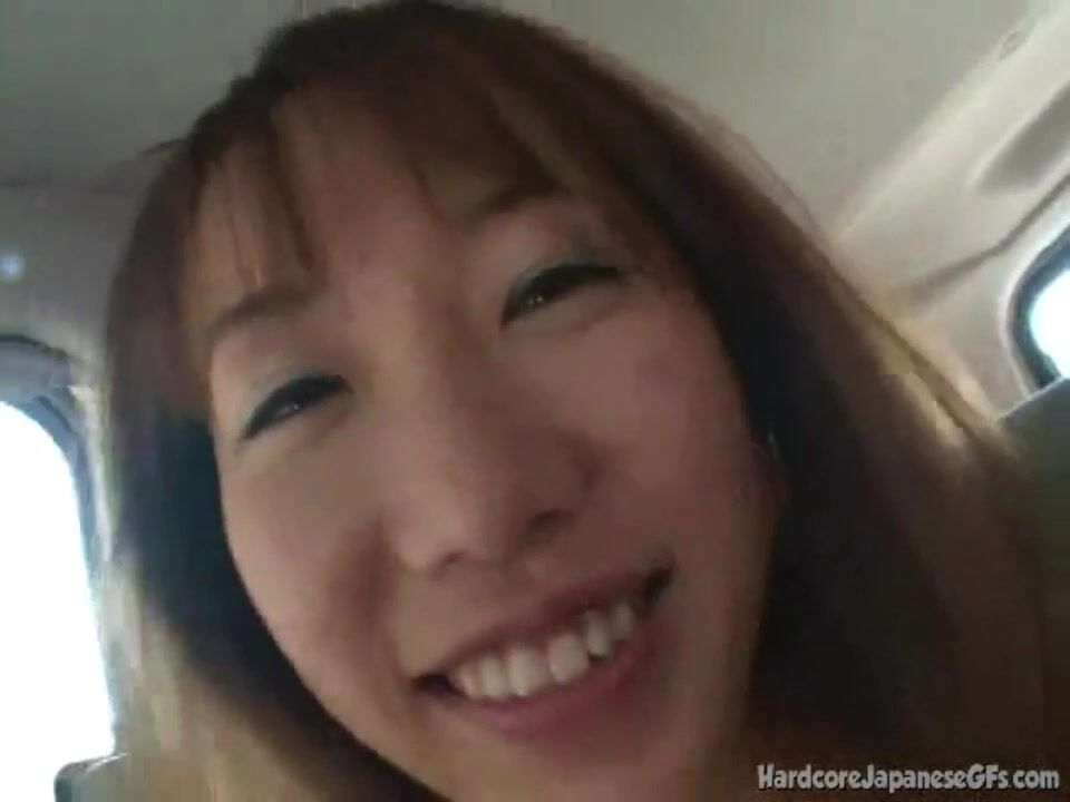 Hot Japanese Babe flashing her perfect tits in Public in daytime. She go inside a car and strip off her clothes showing her medium tits and pussy and fingering it