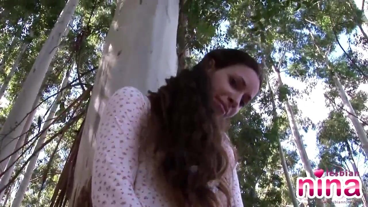 Lesbian Nina get nude showing natural tits and shaved pussy