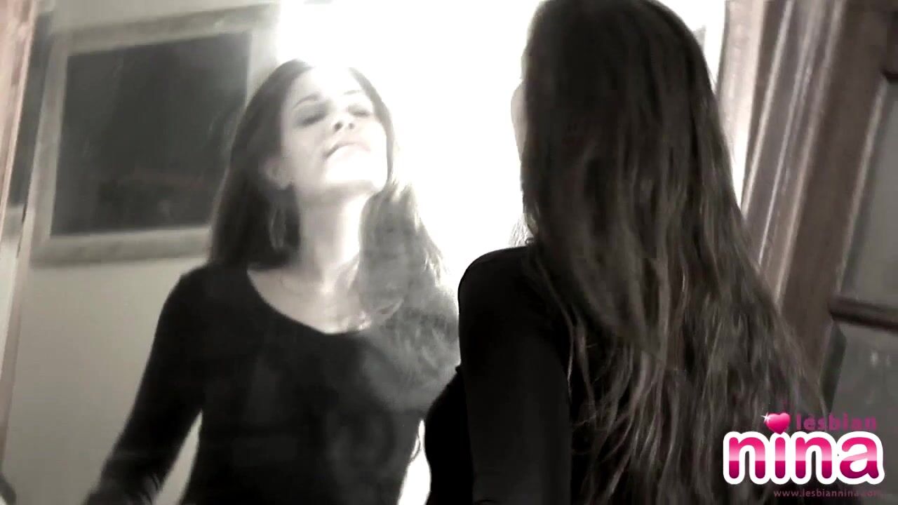 Lesbian Nina strip off her clothes showing her perfect tits and Ass in closeup