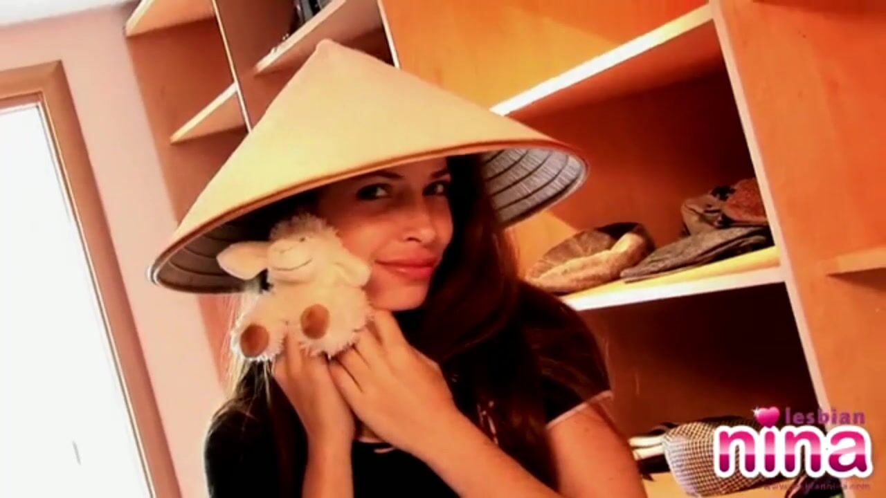 Lesbian Nina fitting some lingerie in closet to showcasing her perfect body. She showing her sexy ass , natural tits and orgasm