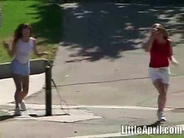 Cute Little April went outdoor with her girlfriend and loves some lesbian action licking tits and pussy outdoor