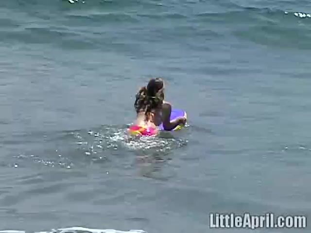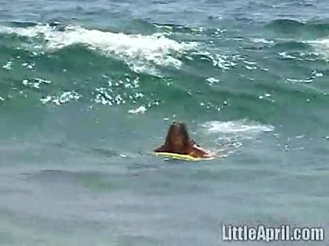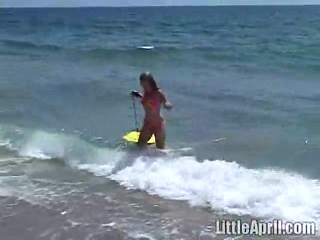 Sweet Little April looks hot in her bikini and she tries hard to surf. The sexy babe then returns home in the car and though tired she fingers herself