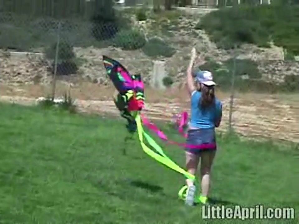 Sweet Little April happy playing kites until it bored. She strip off and rubbing her lollipop to her tits and pussy