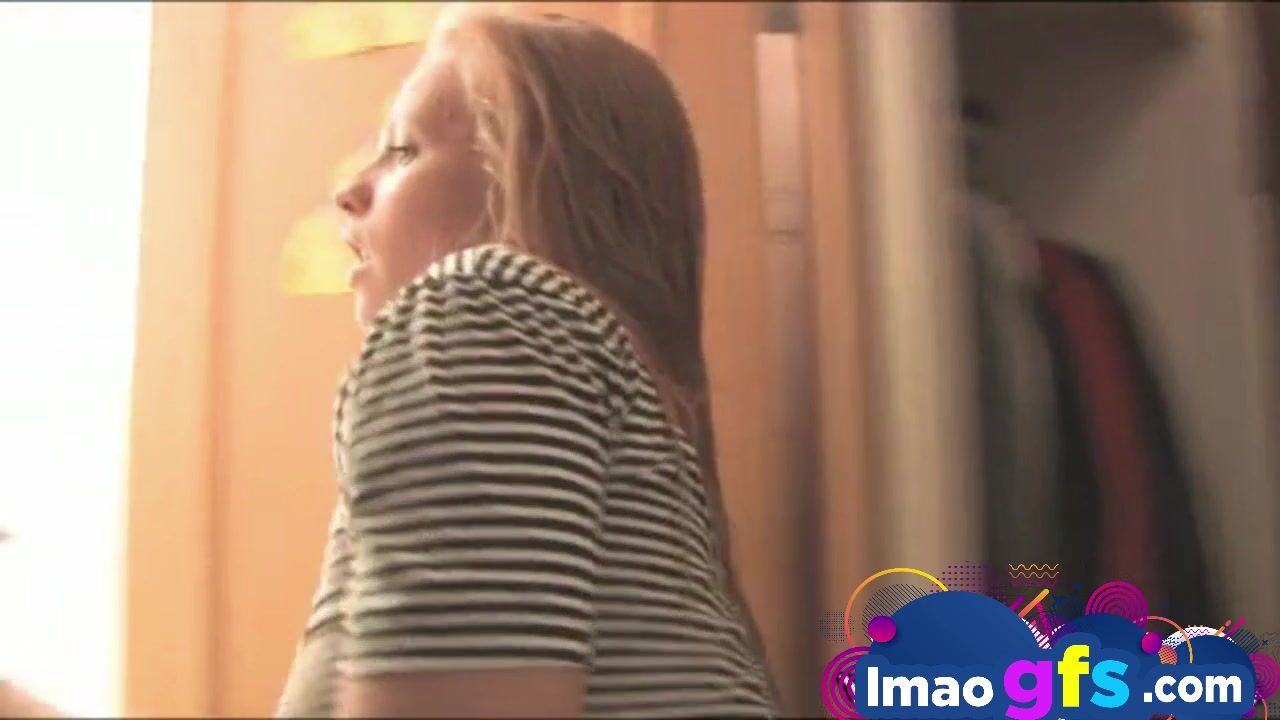 Young Blonde fixing hair on the mirror and get horny. She rubbing her tits and showing nipples and pussy closeup