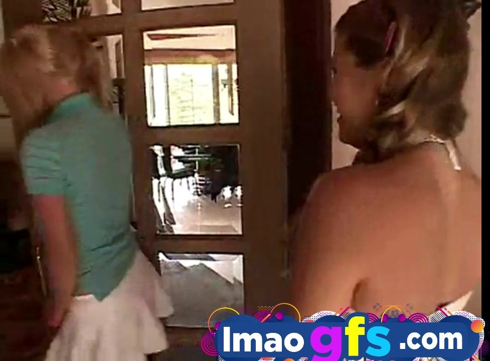 Hot Blonde showing small tits and pussy. They laydown on kitchen table and Playing Pussy and fingering