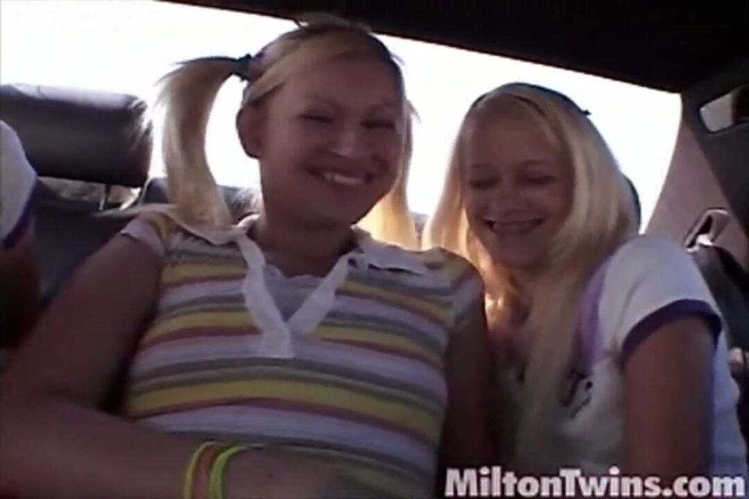 Milton Twins kissing and licking Threesome at Car