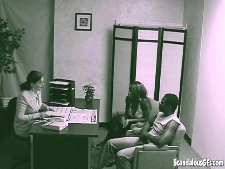 the secretary busy while Black couple waiting . when secratary get some stuff. the couple starts kissing teasing and she blowjob her partners. they fucked hard until the secratary came back.