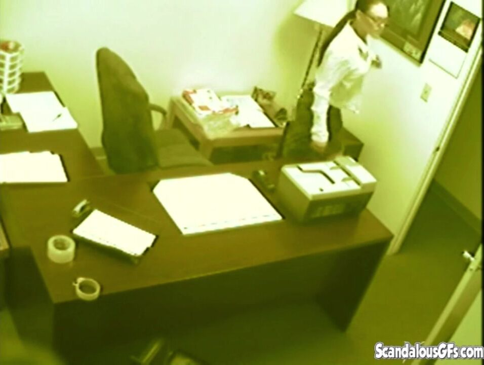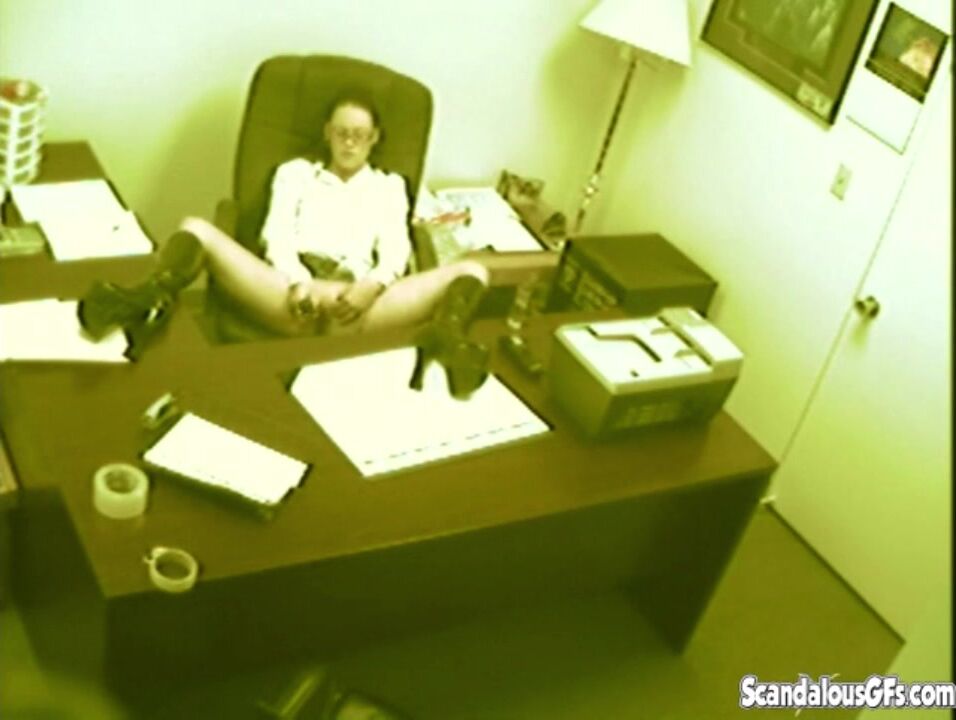 secretary fingering and masturbating pussy at office