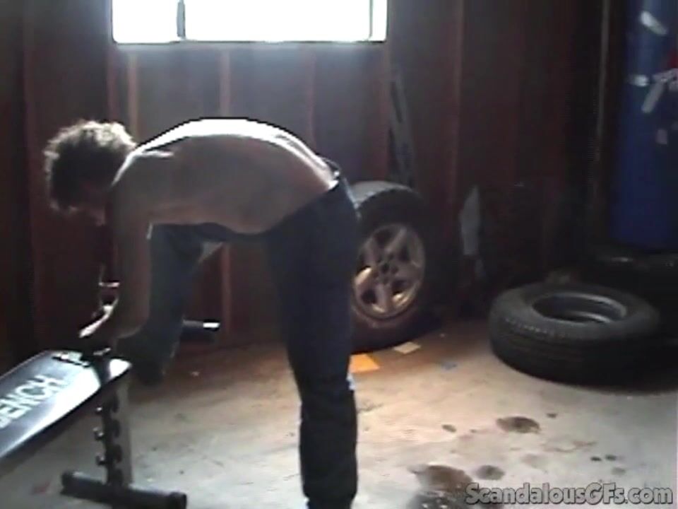 Naughty Hot Blonde arrive in carshop. She kissing a guy and remove her clothes with medium tits and kissing. She fucking on top and dogging
