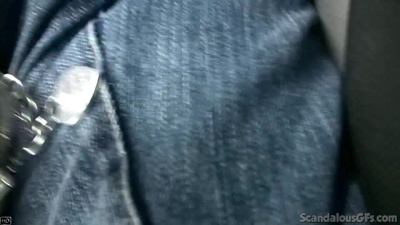 Naughty Brunette teasing her boyfriend grab dick and blowjob while driving on car