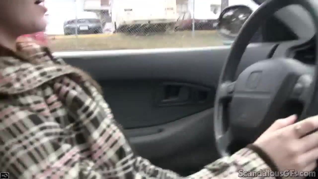 Naughty Jenny seduce her boyfriend by rubbing her dick in car.they get out on car and find some place outside and blowjob the big dick until cumming