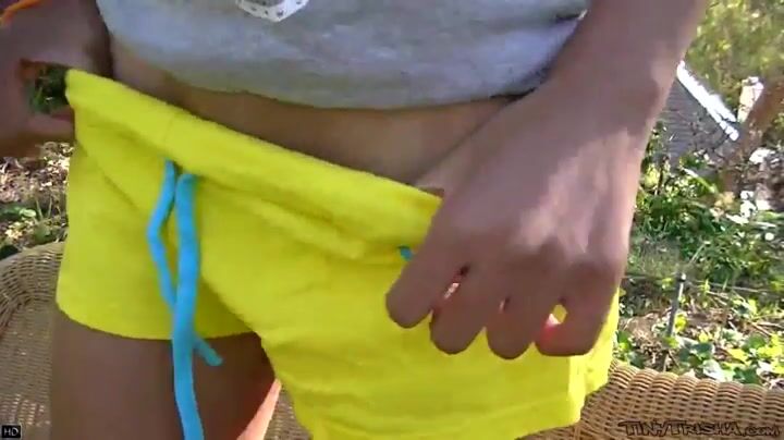 Tiny Trishia relaxing outdoor when boyfriend came and ask her to take off her clothes.