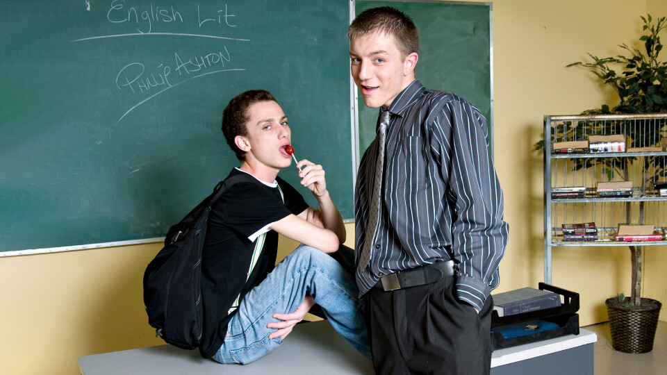 This scene with twinks Tyler Dawsen and Phillip Ashton features crazy action against the black board!