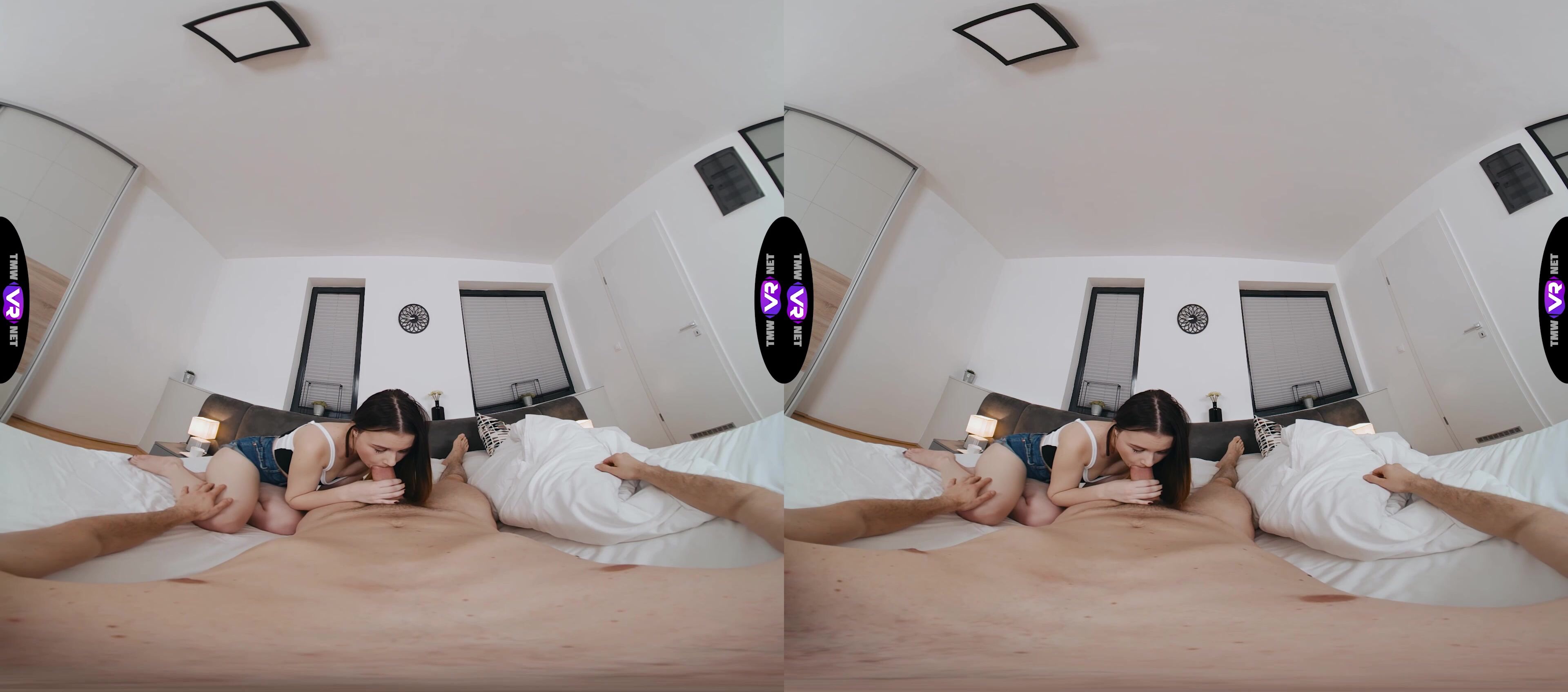 Gentle Vivien Doll adores taking care of her dear and close people. She believes that starting a morning with something pleasant is a need to have a nice day. She opens her eyes pretty early, though just in time to make some fresh coffee for her boyfriend, who still enjoys the warmth of their comfy bed. Vivien Doll is ready to hand him a cup of the beverage but suddenly notices he has a huge hard-on. Sure, a gentle babe like Vivien Doll can’t leave her beloved lad like that, so she puts away the coffee and takes the dude’s dick into her mouth, hands, and pussy.