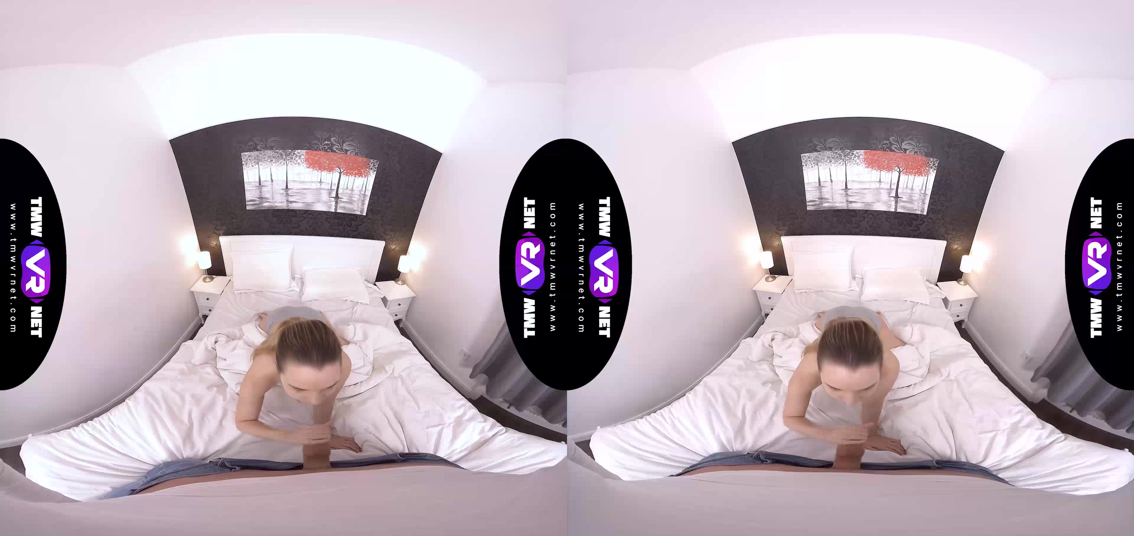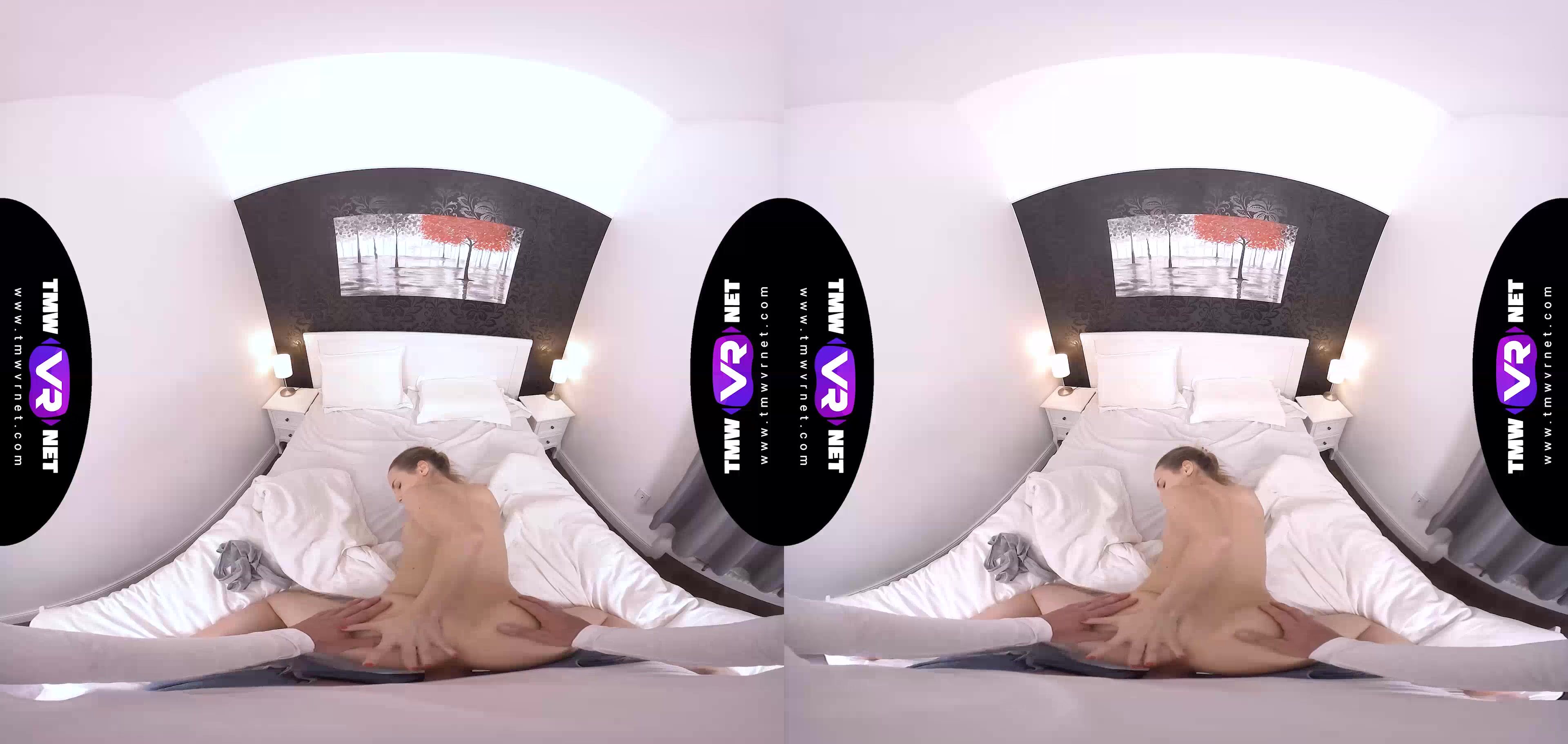 All love novels claim that looking at your beloved person when he or she sleeps is the most romantic thing in life. Dude decides to check if that is true or not. So he enters Mona Blue's room when she is still sleeping in her warm bed. He watches her breething slowly and he loves the view so much that he gets excited almost right away. He is about to wake the cutie but she opens her eyes by herself. Mona Blue gets very much surprised to see the dude watching her but she loves the idea as well. So she decides to show him how to start a morning properly and that is not with a cup of coffee or a morning workout but by making passionate sex.