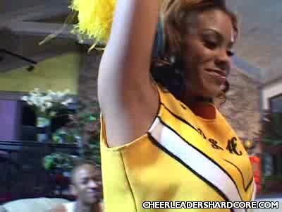 The team has a new gorgeous cheerleader, her name is Tina and she's here to show this guy what she's made of. She starts by stripping off to tease the guy with her nice set of ebony tits and then went down on her knees and slobbered his meaty black cock.