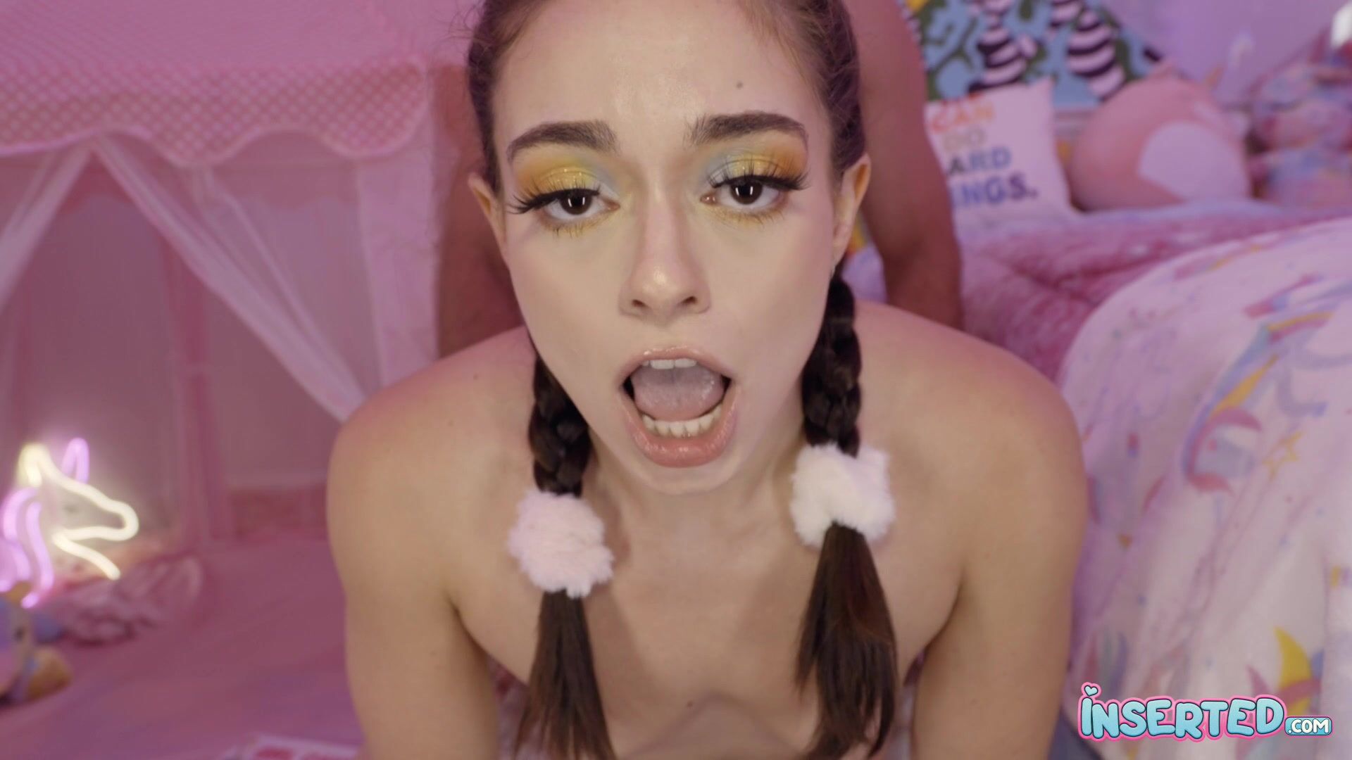 Sophia is supposed to be doing her homework but how can she concentrate when her pretty pussy is so horny? She just has to play with it and thenn invite you over to stuff it full of her favorite toy...hard cock! She even wants to suck on it so put it in her mouth, too. Isnt it fun being in her room?