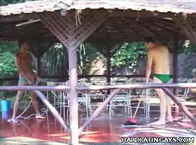 Two handsome gay Latinos are in a gazebo getting intimate with each other. Gabriel and Reginaldo met each other at the beach and here we have them getting to know each other. It starts with these guys making out and running their hands all over each other's bodies.