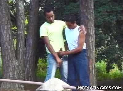 Gabriel went out cruising in the wood and met this horny gay Latino named Josiel and right then and there they got to know each other by getting naked and examining each other's package. Josiel went down on his knees and began slurping Gabriel's shaft.