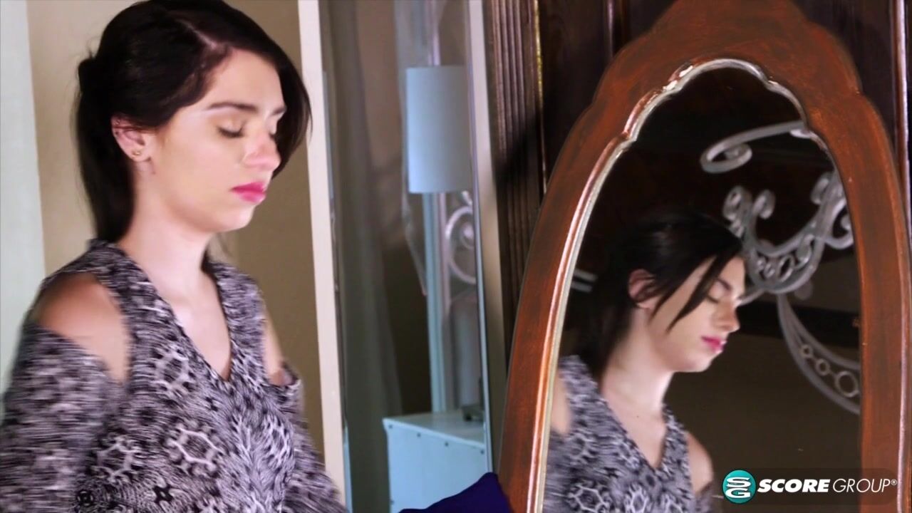 Joseline is trying on her mom's new dress to see how it looks on her. And while she's at it, she tries mom's boyfriend's cock on for size. It fits perfectly in her mouth. Once she has her lips wrapped around his shaft, Joseline shows us what a cock-hungry teen she really is. She gives him a slobbery blow job with lots of spit, slurping and deep-throat. This cock is too good to not fuck, so Joseline sits on it, her perfect, round boobs bouncing as she rides. She gets fucked in a variety of positions, moaning and talking dirty the whole time. She cums and cums, her eyes rolling back and her mouth open. Then it's mom's boyfriend's turn to cum. He drizzles Joseline's face with cum. It's a good look for her.
