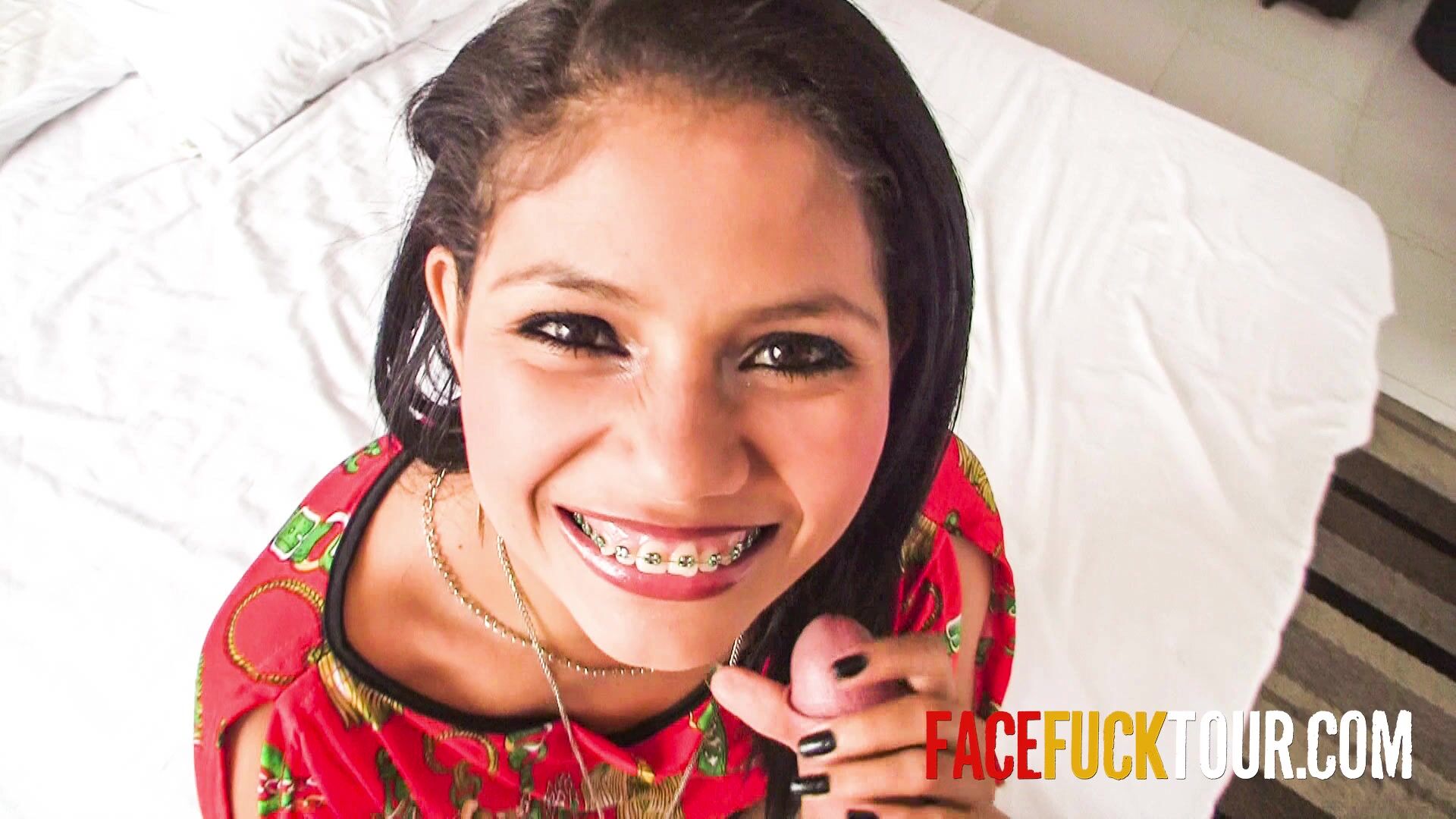 Latina hottie wants my cum on her braces after deepthroat