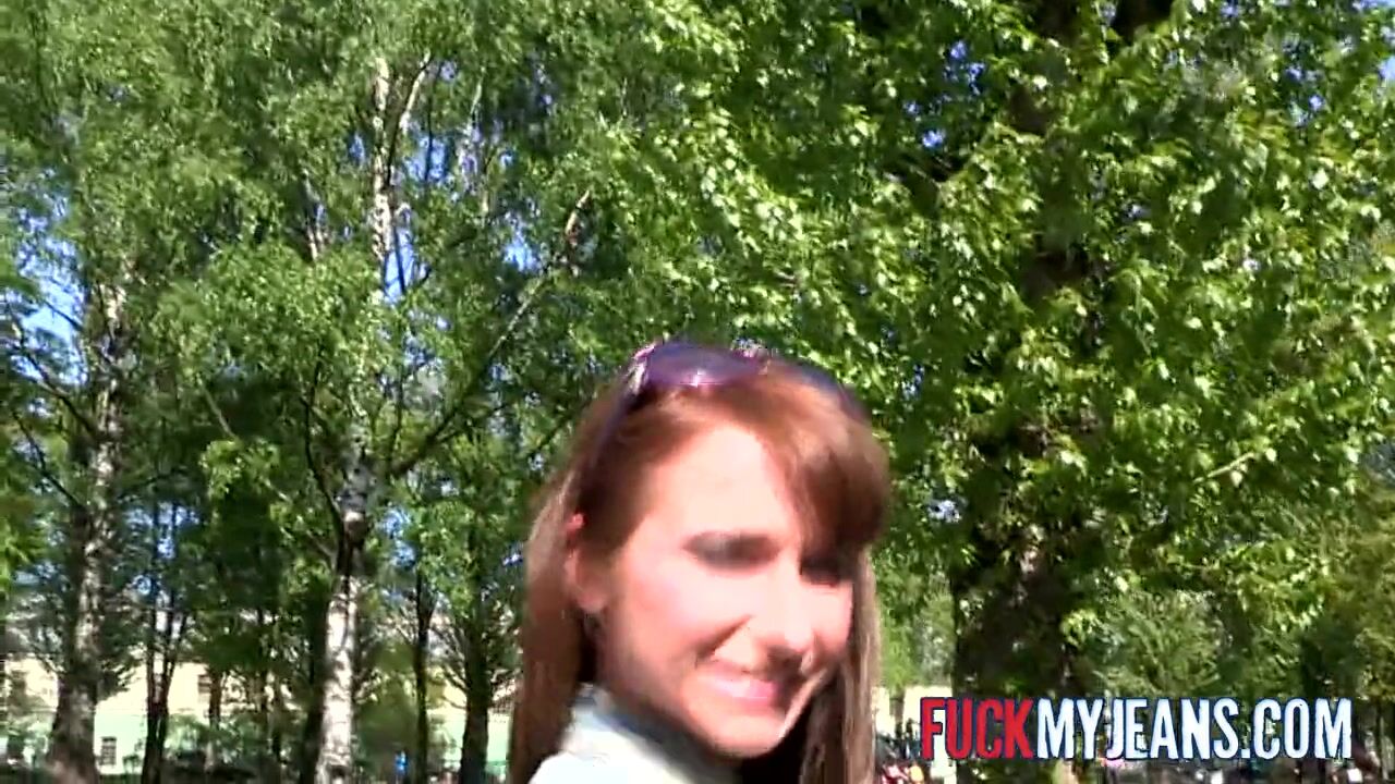 Cute European brunette 19yo slut in tight jeans took a cock down her throat and let her boyfriend fuck her pussy rough and stretch her asshole. For full hd video visit FUCKMYJEANS