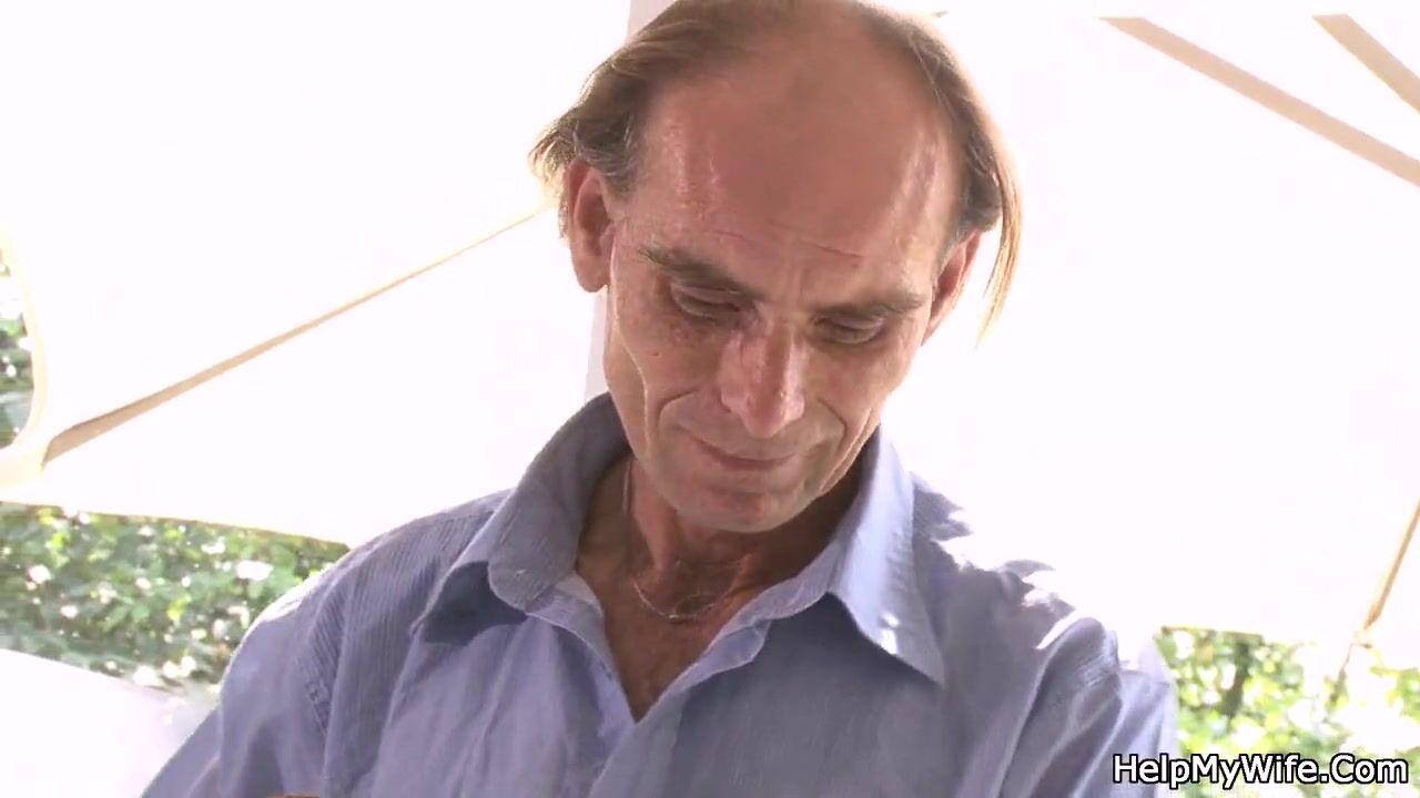 Old husband watching his young wife fucking